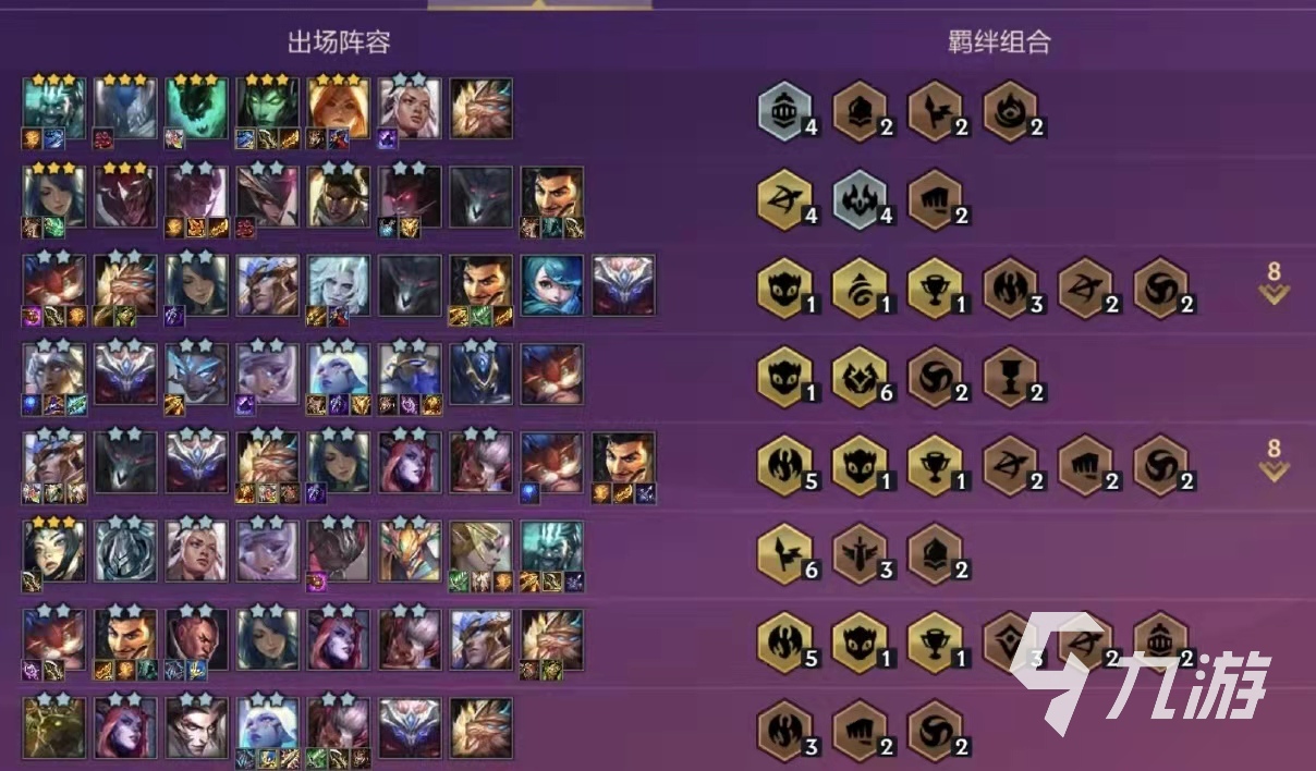 德萊文、加里奧、佛耶戈、芮爾、神王蓋倫、泰坦、錘石、女槍,8人口時候成型,這套陣容比較怕AP傷害,因為沒有魔抗加成,所以前排角色只能靠裝備彌補了。