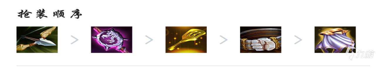 搶裝備順序依次是反曲之弓、無用大棒、金鏟鏟、巨人腰帶、負極斗篷