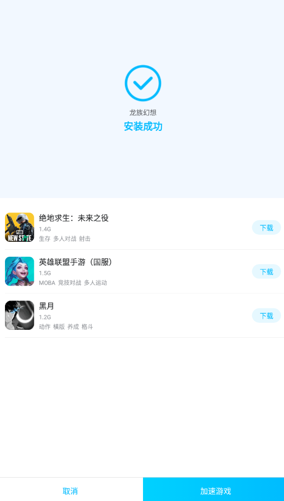 游戲下載完成之后,就會(huì)進(jìn)入游戲安裝界面,在該界面直接點(diǎn)擊安裝就可以了。完成了游戲安裝之后,玩家可以在安裝成功界面,找到加速游戲這個(gè)選項(xiàng),玩家直接點(diǎn)擊這個(gè)選項(xiàng),就可以開(kāi)始加速游戲了。