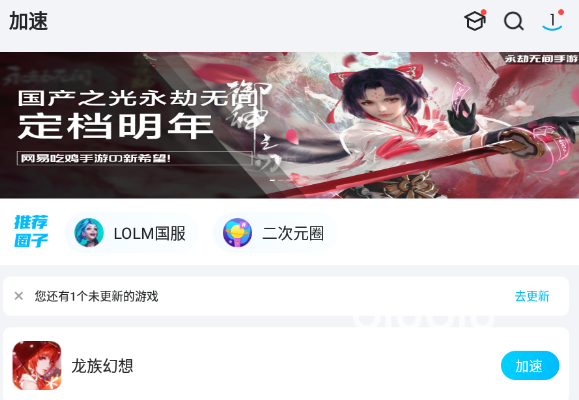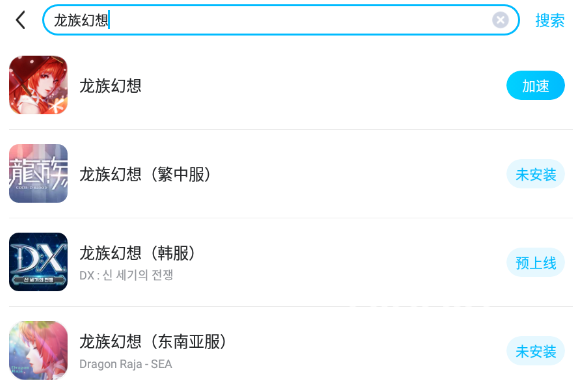 玩家在進(jìn)行完第一次游戲加速之后,如果想要再次加速這款游戲,只需要打開(kāi)biubiu加速器,找到龍族幻想這款游戲,點(diǎn)擊游戲旁邊的加速選項(xiàng),就可以再次加速這款游戲了。