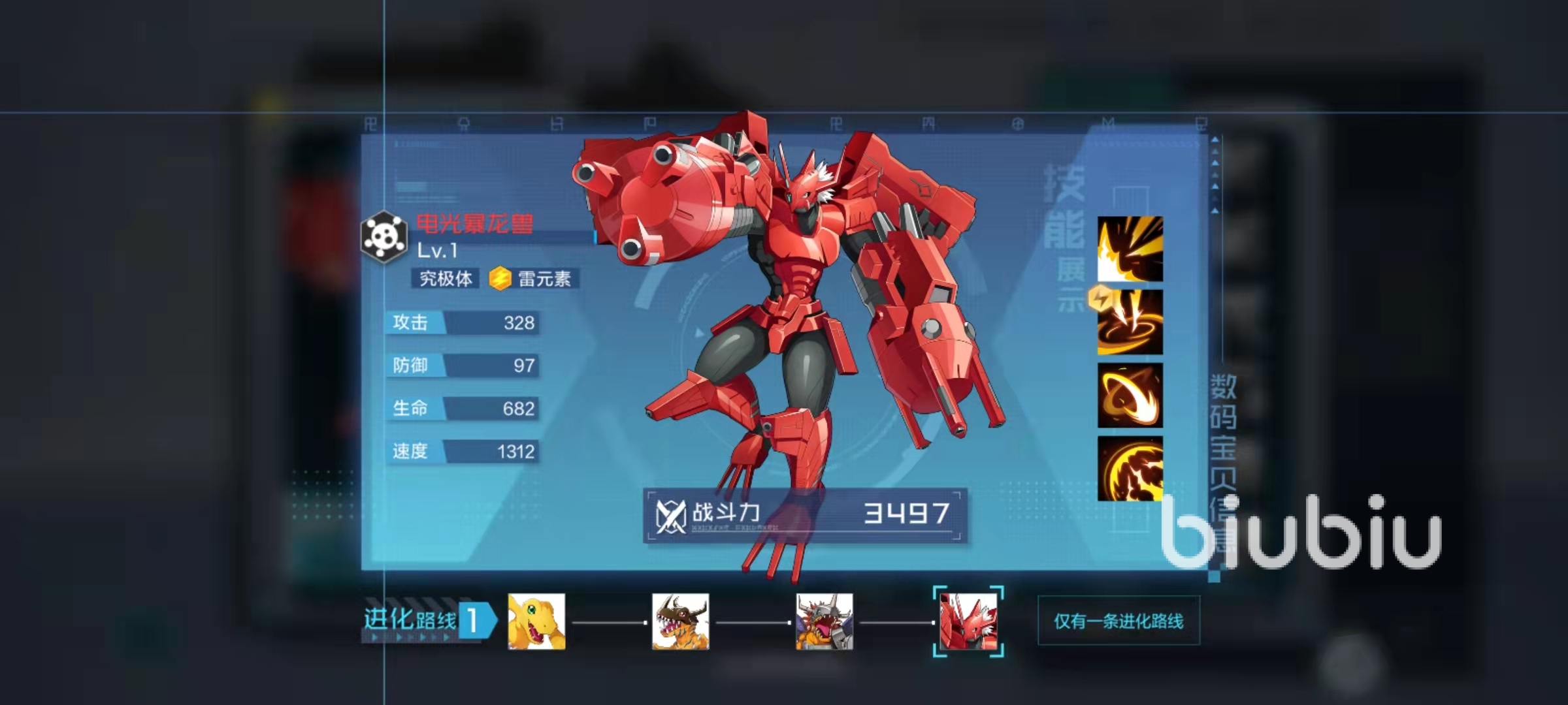 小編選擇的五名數(shù)碼寶貝是電光暴龍獸,正義獸,杰斯獸,十字獸和力神多比獸。其中電光暴龍獸是屬于群體攻擊型的數(shù)碼寶貝,自身的奧義技能等離子刑柱可以攻擊敵方全體數(shù)碼寶貝,在造成傷害的時(shí)候,如果自身具有電力防護(hù)效果,那么奧義技能可以無(wú)視對(duì)方防御。電力防護(hù)是電光暴龍獸的得意技能電力防護(hù)附加的。進(jìn)場(chǎng)之后就可以自動(dòng)附加電力防護(hù),此外消滅敵人的時(shí)候可以自動(dòng)補(bǔ)充層數(shù)。凡是攻擊帶有電力防護(hù)的敵人,都會(huì)受到過(guò)載效果,這個(gè)效果是雷電系陣容的核心,可以將受到額外的雷屬性傷傷害,因?yàn)檫@一套陣容里都是雷屬性的傷害,所以傷害加成非??捎^。