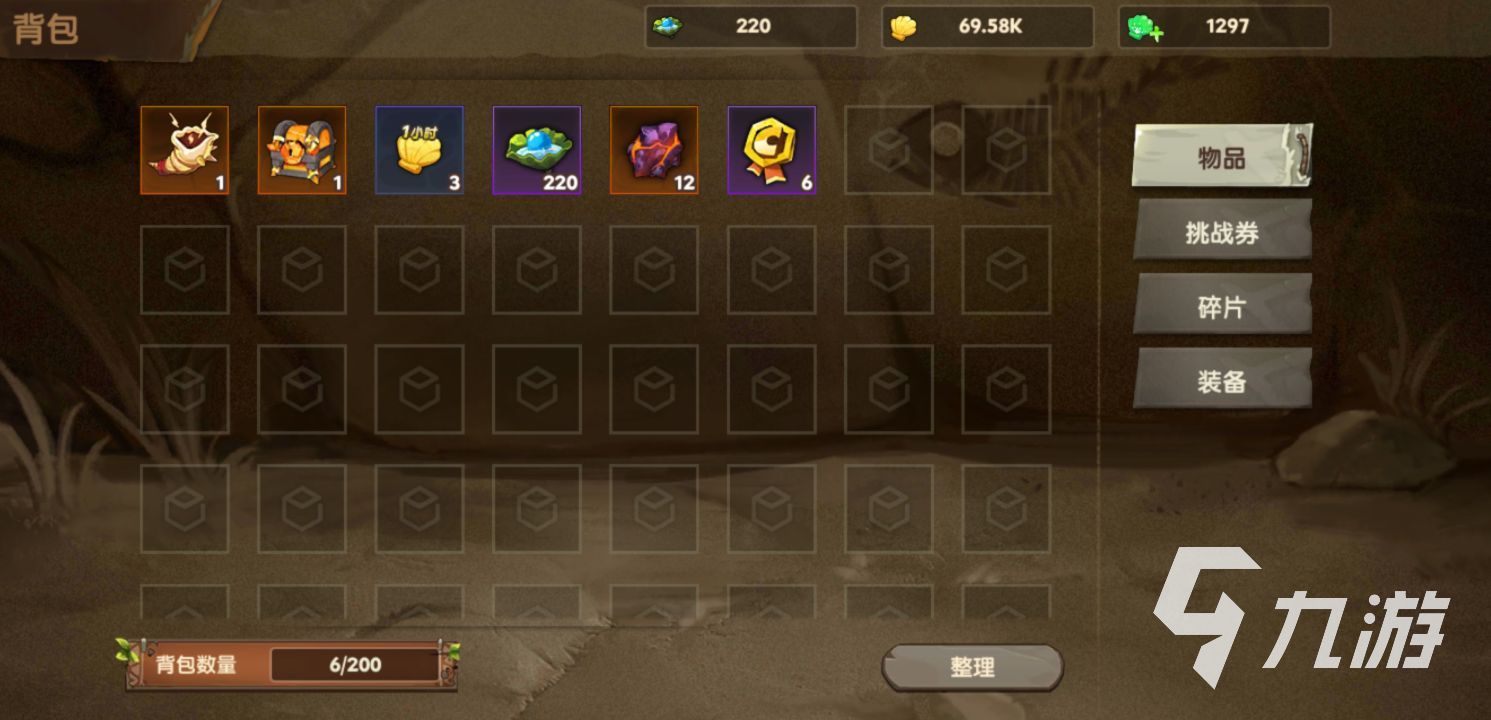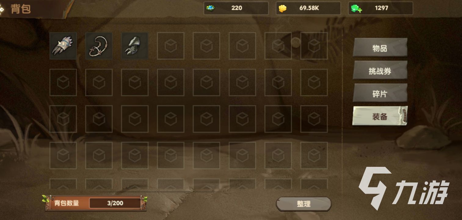 背包里面一共分為四大項(xiàng),分別是物品挑戰(zhàn)券,碎片以及裝備,物品就是我們從各種激活碼以及禮包中獲得的各種寶箱,寵物升級(jí)經(jīng)驗(yàn)等等,還有各種副本的收服寵物令,在游戲中只要進(jìn)入副本,如果擊敗了寵物還無(wú)法立即獲取,必須有寵物收復(fù)令,并且一些ssr級(jí)別的寵物,必須需要花費(fèi)昂貴的高級(jí)收服令來(lái)進(jìn)行召喚。