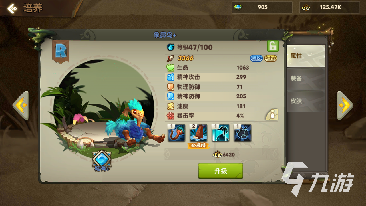 第一個方式就是寵物升級了,寵物的等級可以通過培養(yǎng)來獲得快速的提升。升級主要是消耗經(jīng)驗值,當(dāng)?shù)燃夁_到了進階階段的時候,就需要消耗靈泉來進行突破提升了。每次寵物在等級提升的時候,速度屬性就會獲得增加。這里可以看到象鼻鳥等級47,速度屬性為181,當(dāng)提升到48之后,速度屬性就變成了185了,這個提升幅度還是很大的, 高級寵物的提升更加多。