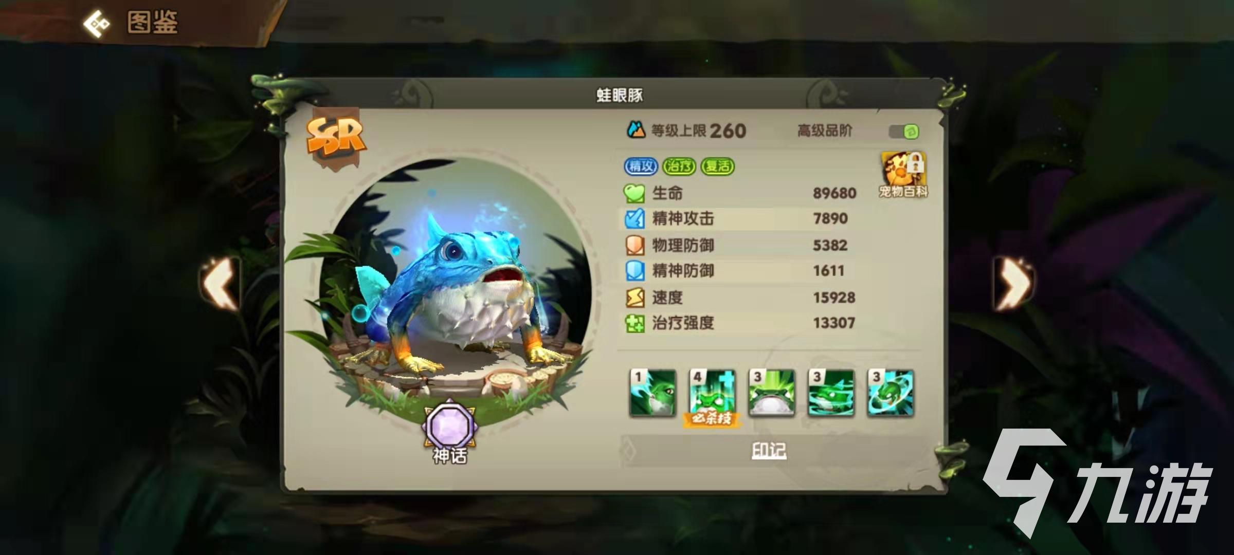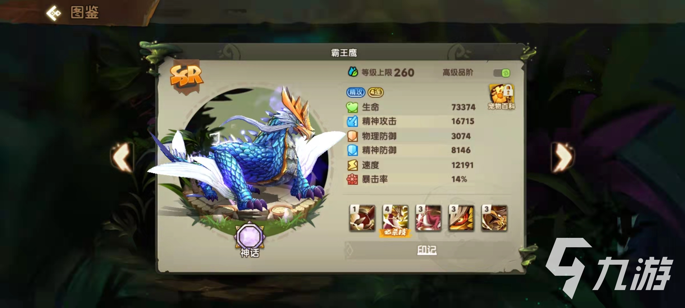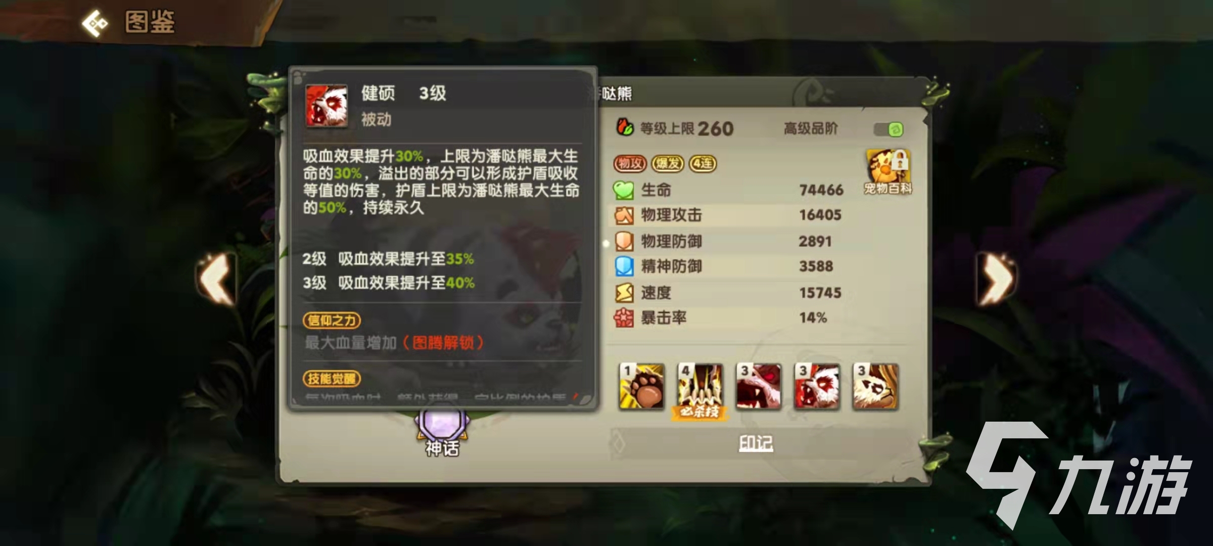現(xiàn)在玩家可以招募到的ssr級別的寵物有潘噠熊,黑蝠豹,蛙眼豚,霸王鷹四個,其中潘噠熊是屬于物攻類型的寵物,擅長爆發(fā)性的連擊傷害。最大的特點是自身的普攻可以增加后期必殺技的傷害,必殺技爆裂熊爪是個很暴力的單體傷害技能,可以造成一次四連擊,血量低的目標可以直接被滿血秒殺。