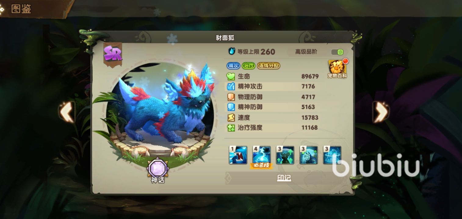 第二個(gè)就是玩家們連續(xù)登錄游戲兩天贈(zèng)送的豺面狐,這個(gè)寵物可以說是一名輔助型的,他的技能就是將場上的所有單位連線,被連線的幾個(gè)寵物將會(huì)分?jǐn)偸艿降膫?,有的玩家可能?huì)認(rèn)為這是一個(gè)不太好的技能,一人挨打,全隊(duì)都要受到傷害,這是不是很雞肋呢,但是他的被動(dòng)技能被連線的單位,每次受到攻擊,可以自動(dòng)回復(fù)20%的生命,這樣就保證了全隊(duì)的存活能力,他的技能還有一個(gè)特點(diǎn)就是可以增加自身的防御力,作為前排也是極強(qiáng)的。