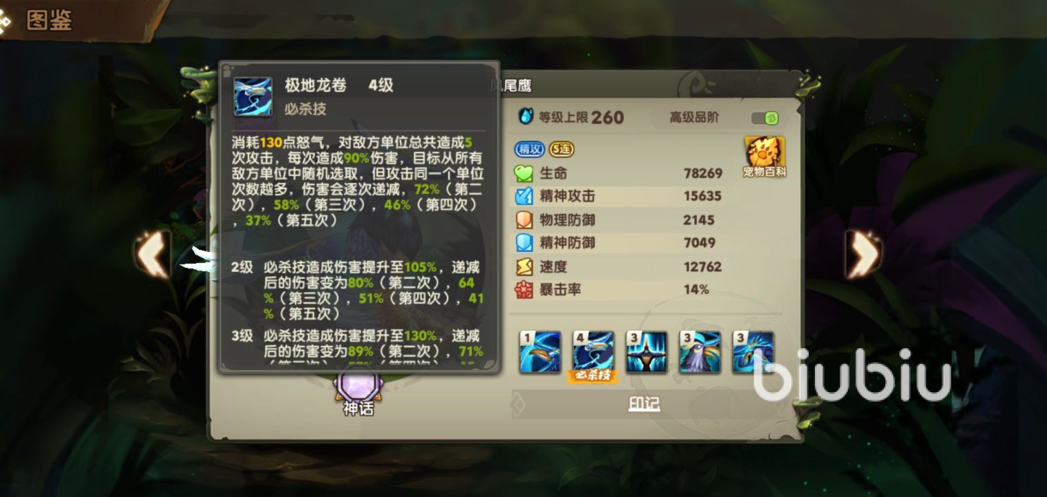 首先第一個(gè)就是大家第一次系統(tǒng)引導(dǎo)抽卡必定都會(huì)召喚出來的鳳尾鷹,鳳尾鷹是前期開荒必定要使用到的一個(gè)寵物,他的技能極地龍卷可以達(dá)到敵方所有的目標(biāo)單位,雖然說傷害會(huì)依次遞減,但是他被動(dòng)的戰(zhàn)斗力加成,可以讓他的傷害依然爆表,前期使用這個(gè)寵物,可以快速的幫助我們過主線關(guān)卡。就算是氪金玩家前期開荒Ssr角色還是比他難培養(yǎng)的,鳳尾鷹可以說是除了霸王鷹之外第二大飛行寵物,平民玩家必練!