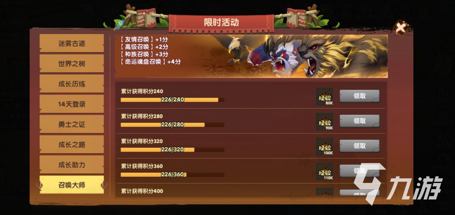 每個(gè)寵物的升級(jí)都需要寵物經(jīng)驗(yàn),上述提到的主線關(guān)卡可以獲取,另外我們作為新手玩家,游戲前期肯定會(huì)給我們提供很多的寵物經(jīng)驗(yàn)獲取幫助,比如說(shuō)限時(shí)活動(dòng),只要玩家們達(dá)到一定的等級(jí)都可以獲取10萬(wàn)寵物經(jīng)驗(yàn),尤其是在召喚大師活動(dòng)中,使用各種召喚都可以獲得積分,而每達(dá)到一定的偶數(shù)階段,都可以獲取超高的寵物經(jīng)驗(yàn),用來(lái)升級(jí)寵物簡(jiǎn)直是綽綽有余。