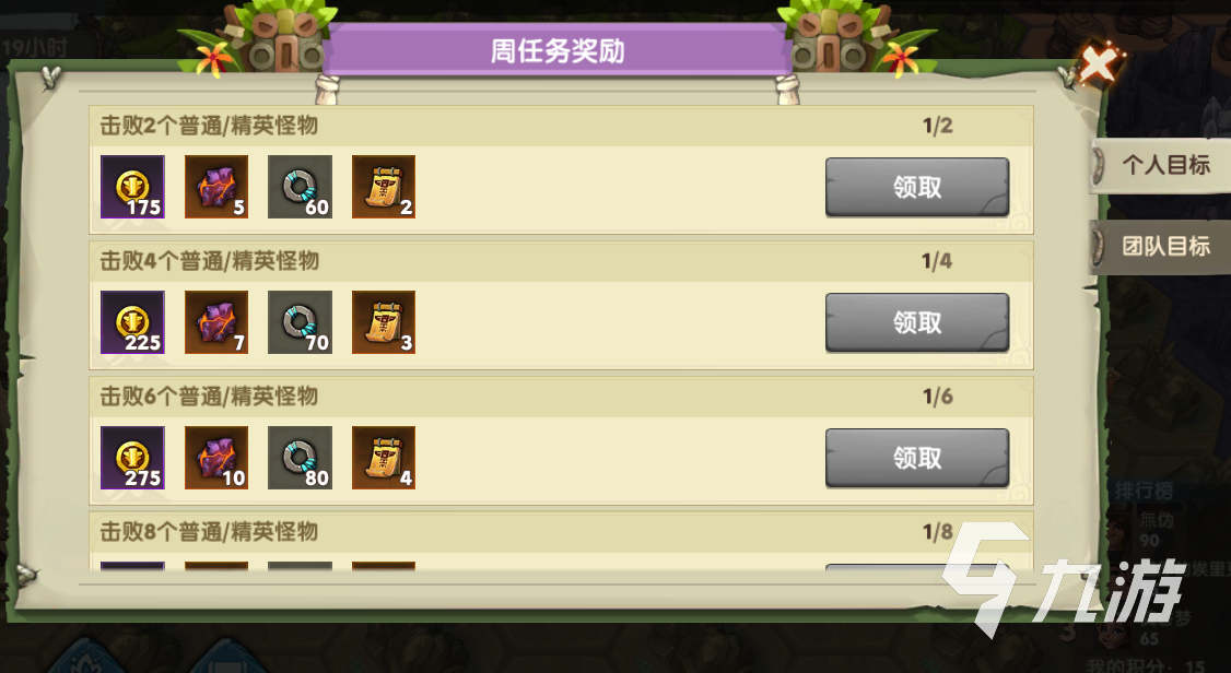 在獎勵方面除了個人目標之外還有團隊目標的設定,個人就是玩家本身的獎勵,團隊就是部落所有成員的擊殺獎勵,只要達到了某個階段,那么就可以領取這些獎勵。