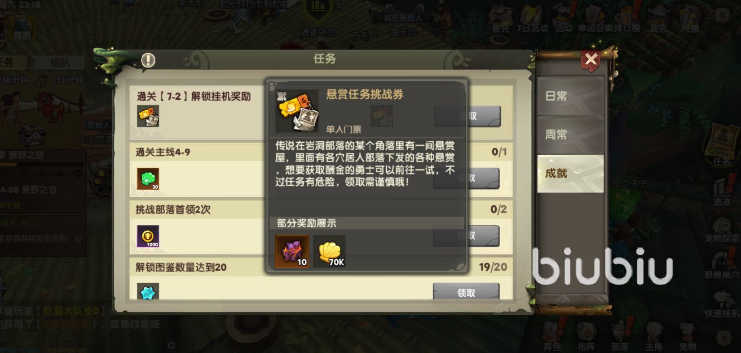 懸賞任務(wù)挑戰(zhàn)券必須在玩家們通過(guò)主線任務(wù)關(guān)卡7-2之后解鎖,超強(qiáng)掛機(jī)獎(jiǎng)勵(lì),也就是說(shuō)在7-2關(guān)卡之前,玩家們掛機(jī)只可以獲得經(jīng)驗(yàn),貝殼等等,但是在通關(guān)7-2之后,再次掛機(jī),第二天上線就可能獲取一到兩張這種懸賞任務(wù)挑戰(zhàn)券了。
