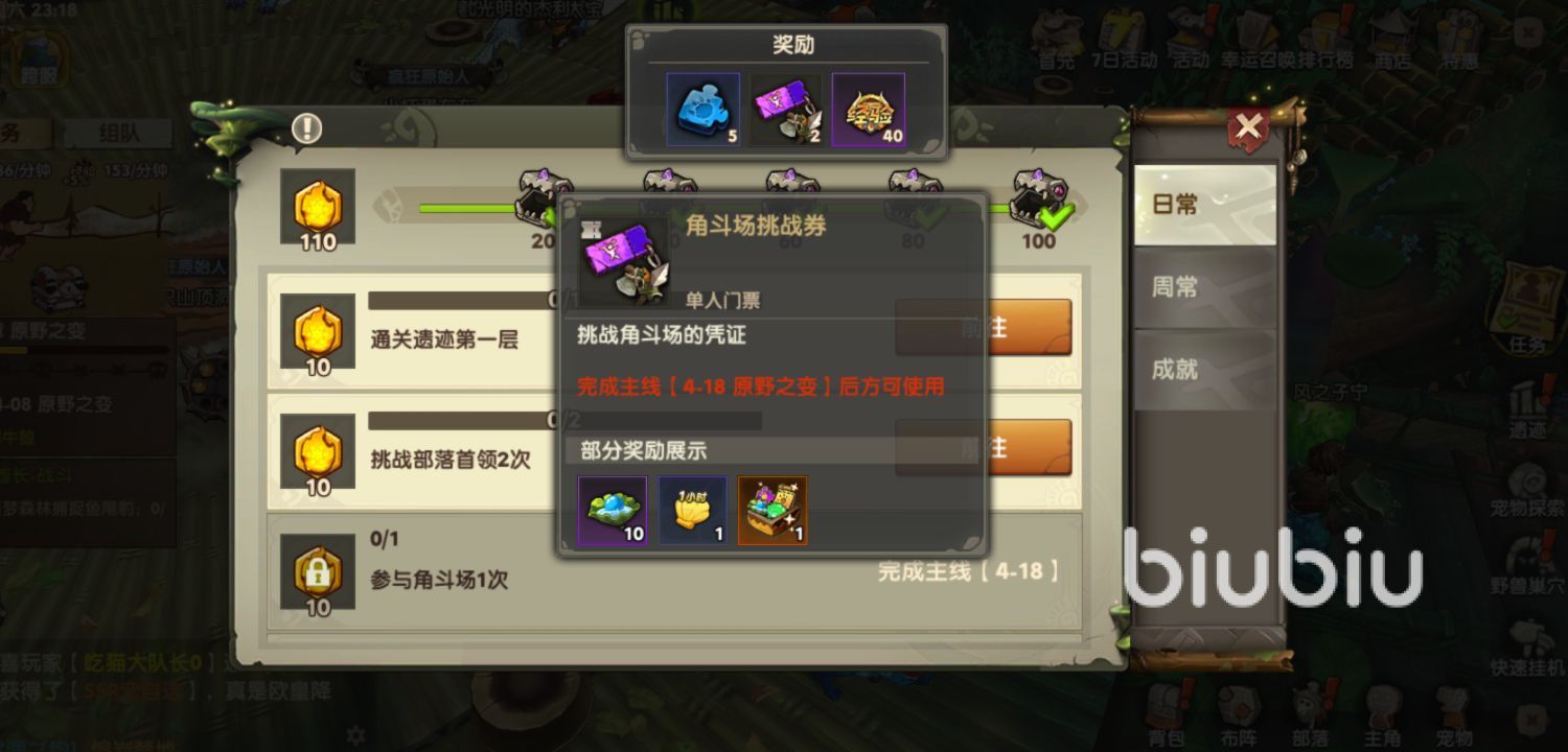 角斗場(chǎng)挑戰(zhàn)券可以在日常任務(wù)中或者是周常任務(wù)中獲得,當(dāng)玩家們的活躍度達(dá)到80,就可以獲取一張角斗場(chǎng)單人門票挑戰(zhàn)券,另外再加五個(gè)sr級(jí)別寵物碎片,這種單人券在通關(guān)主線關(guān)卡4-18原野之變之后才可以使用,獲取的獎(jiǎng)勵(lì)中規(guī)中矩,運(yùn)氣好的話,可以開出來(lái)十連抽,幸運(yùn)召喚券。