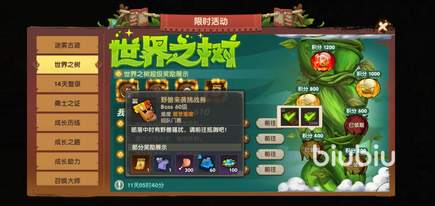 而野獸來(lái)襲boss挑戰(zhàn)券,則需要在限時(shí)活動(dòng)世界之樹里面獲取,玩家們需要。通過(guò)完成任務(wù),通過(guò)主線關(guān)卡,探索野獸巢穴,探索遺跡等等方式這樣可以獲取野獸來(lái)襲挑戰(zhàn)券了,并且成功抵御野獸的話,獲取的獎(jiǎng)勵(lì)除了召喚券之外,還有一個(gè)隨機(jī)的sr級(jí)別寵物,外加100個(gè)玉貝,60個(gè)sr級(jí)別寵物碎片,30個(gè)迷霧遺跡中的食物。