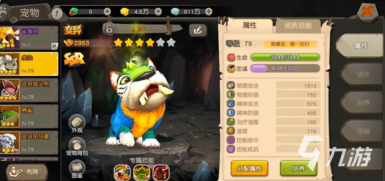 再來(lái)看他的被動(dòng)技能高級(jí)感知,可以對(duì)隱身的目標(biāo)使他顯形一秒,并且接下來(lái)可以攻擊隱身的目標(biāo),而且還會(huì)對(duì)其額外造成30%的傷害,這一點(diǎn)比較克制一些蘭陵這樣的隱身怪物,再搭配上獠牙這個(gè)技能,對(duì)敵人的物理?yè)魵⒏怕士梢蕴岣?%~10%左右,可以對(duì)一些物理傷害的英雄打出更高的傷害,作為一只老虎,進(jìn)入戰(zhàn)斗之后自身速度還會(huì)額外增加5%左右,可以說(shuō)是十分敏捷的一個(gè)戰(zhàn)斗寵物。