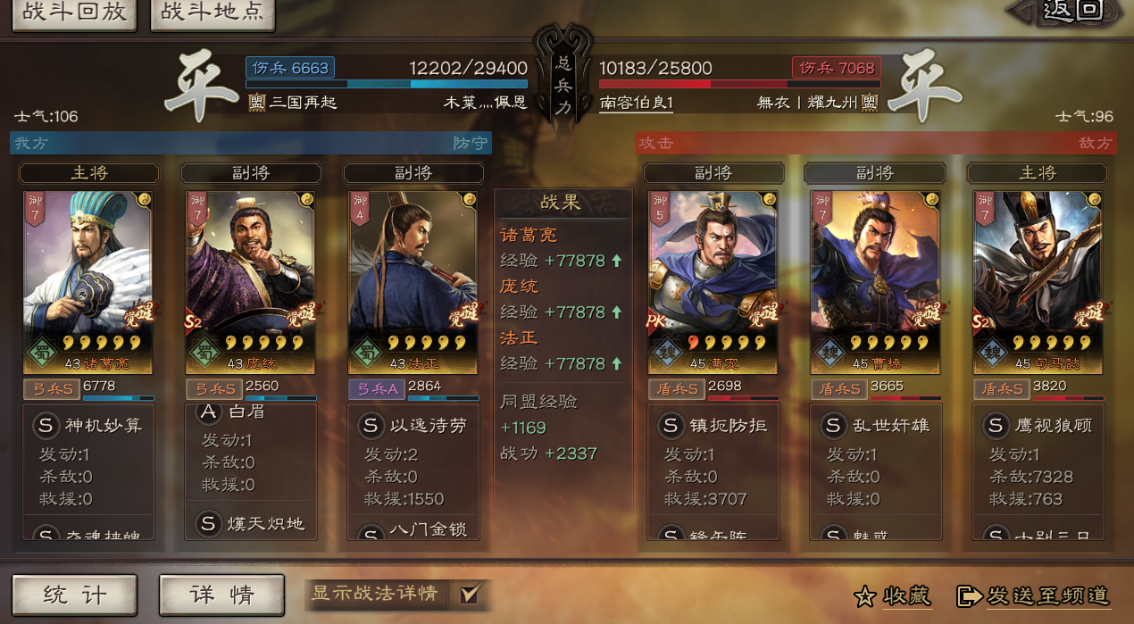 姜維:必帶戰(zhàn)法【奪魄攜魂】搭配自帶戰(zhàn)法,將敵人屬性吸成傻子,讓戰(zhàn)法的傷害進一步增加;第二戰(zhàn)法【杯鬼蛇車】提供穩(wěn)定輸出的同時,給予己方穩(wěn)定的治療。