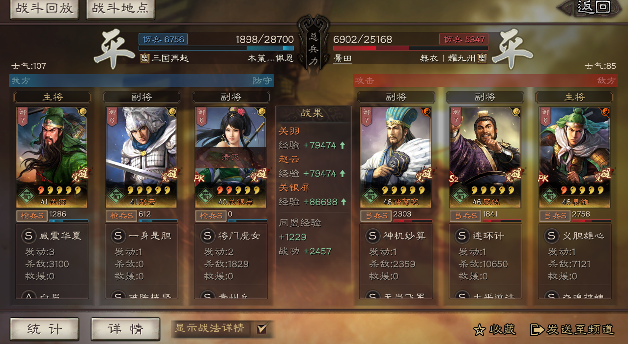 太史慈:必帶戰(zhàn)法【折沖御侮】保護甘寧兵力的同時,降低敵人的智力和防御力;第二戰(zhàn)法優(yōu)先【當鋒摧決】解決敵人的被動和指揮戰(zhàn)法,其次暴戾無仁、速趁其利、百騎劫營等暴力的突擊戰(zhàn)法也是不錯的選擇。