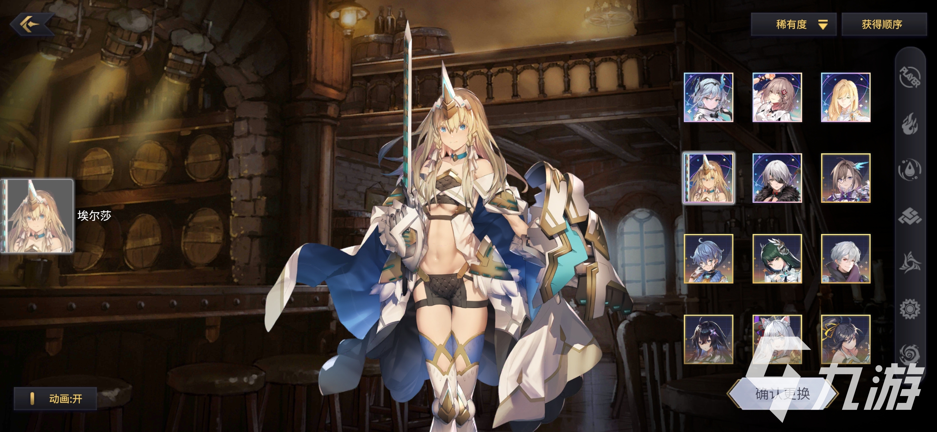 步驟三:來(lái)到看板娘切換界面之后,點(diǎn)擊右側(cè)自己心儀的角色,可以通過(guò)篩選以及稀有度,選擇完成之后,可以觀察一下左側(cè)的覺(jué)醒皮膚,覺(jué)醒之后的皮膚非常的酷炫,然后再觀察一下下面的動(dòng)畫(huà)是否開(kāi)啟,開(kāi)啟之后在看板娘見(jiàn)面就會(huì)來(lái)回的晃悠,栩栩如生,選擇關(guān)閉就比較安靜。