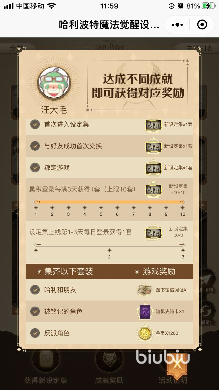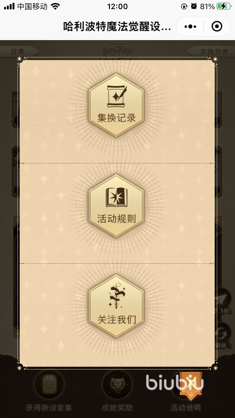 首先大家要收集哈利波特魔法覺(jué)醒設(shè)定集的話,可以直接在小程序里面搜索哈利波特魔法覺(jué)醒設(shè)定集就能看到小程序就可以收集設(shè)定集了。找到收集設(shè)定集的入口就可以開(kāi)始收集設(shè)定集了。