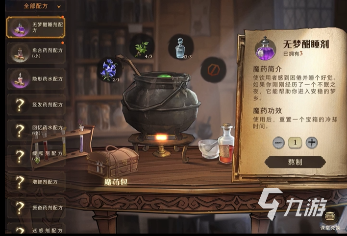 制作無夢(mèng)酣睡藥劑所需要的藥材如下,薰衣草、苦艾草、水。對(duì)于苦艾草和水小編就不做強(qiáng)調(diào)了,它們都可以在課堂兌換或者在禁林獲取。薰衣草的話,玩家只能在課堂兌換了。