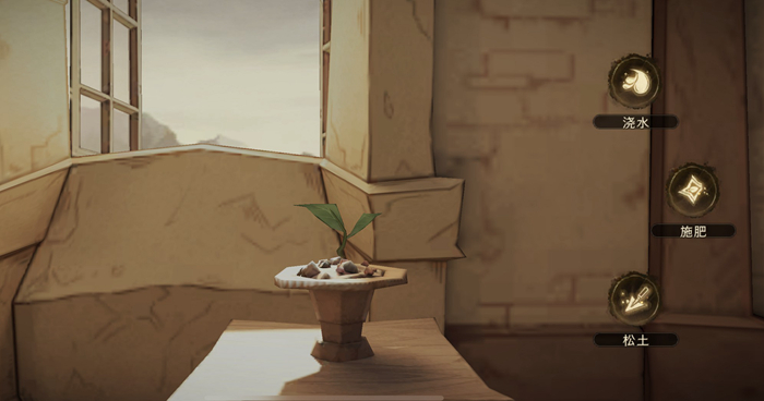 而冬青木盆栽的位置其實(shí)就是在我們的宿舍內(nèi)了,我們來到宿舍之后看向魔藥研磨臺(tái)的方向,那邊靠墻有一個(gè)窗臺(tái),就是之前我們獲得光輪2000的那個(gè)窗臺(tái),窗臺(tái)下面的一個(gè)小桌子上就擺放著一個(gè)盆栽,這就是冬青木盆栽了。我們點(diǎn)擊冬青木盆栽就可以與其互動(dòng)進(jìn)行培養(yǎng)了。