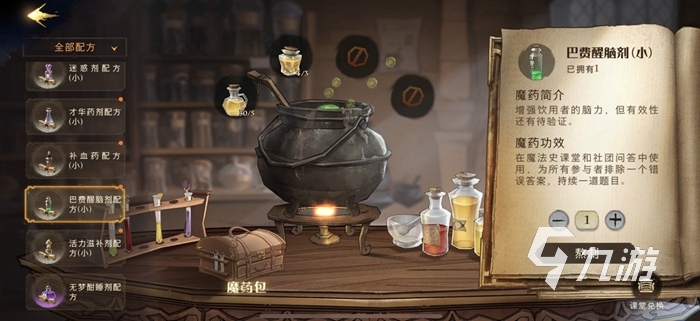 巴費(fèi)醒腦劑簡述:巴費(fèi)醒腦劑可以增強(qiáng)飲用者的腦力,簡單來說就是讓人變得聰明、記憶力更好。我們在社團(tuán)活動(dòng)中的社團(tuán)問答以及魔法史課堂是需要答題的,而使用巴費(fèi)醒腦劑就能夠幫助我們在四個(gè)答題選項(xiàng)中進(jìn)行錯(cuò)誤答案的排除。