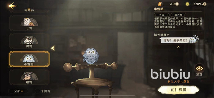 小編比較喜歡的是小雪鸮,聊天框會有一個小雪鸮的小頭像,很可愛。這也是原著中哈利波特的小跟班哦。玩家需要購買新生入學禮包獲得價格是6rmb。喜歡的話就買一只,之后會一直跟著你的,成為你的小寵物。