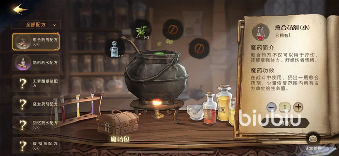 其次可以使用回復(fù)類藥劑來回復(fù)血量,藥劑需要先獲得配方然后可以收集材料進(jìn)行熬制,藥劑可以在禁林中使用。