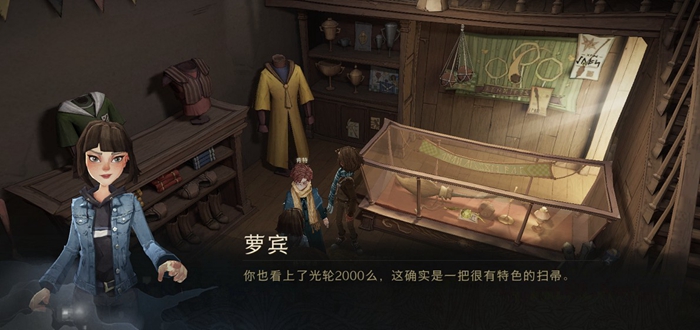 另外,在我們來到對角巷并且解鎖開啟魁地奇精品店找NPC羅賓對話的時候也可以看到商品列表中有光輪2000,而除了光輪2000之外也有拂星者21以及橫掃II這兩個飛天掃帚可以購買,售價分別是300寶石以及120寶石。