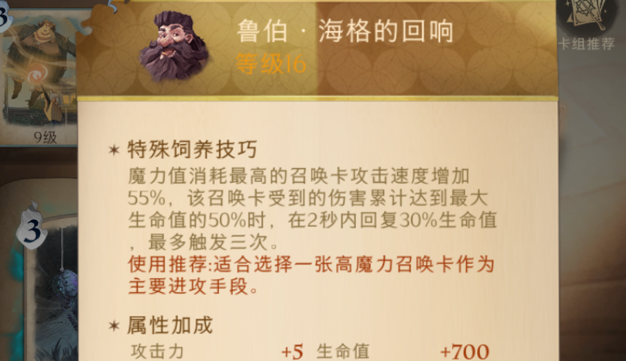 1、核心回響:魯伯海格回響;能夠對最高費的召喚卡進行加成,巨怪作為一個肉盾常用卡,加成之后還能續(xù)航,惡心敵方。