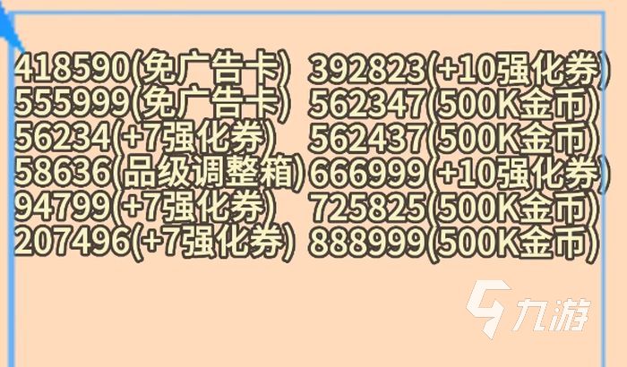 兌換碼里有許多的福利內(nèi)容相信一定能幫助大家游玩更加輕松,比如說免看廣告一次就好像是送玩家復(fù)活幣一樣,還有金幣等內(nèi)容幫助大家升級裝備,有了高級裝備大家就能更好的闖關(guān)推圖了,還有兌換碼的內(nèi)容有很多,具體如何就看玩家領(lǐng)取的碼是如何的了。