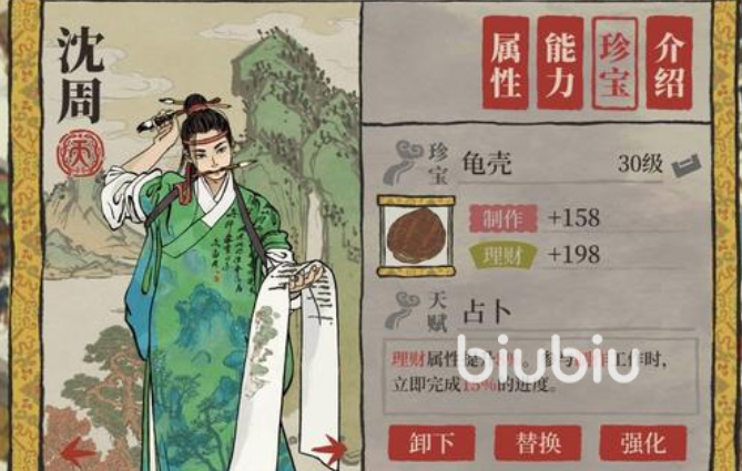 投資理財(cái)(刷錢、刷物資):沈周,投資理財(cái)高,力量功能強(qiáng)大,能夠刷錢,但建議刷書(shū);