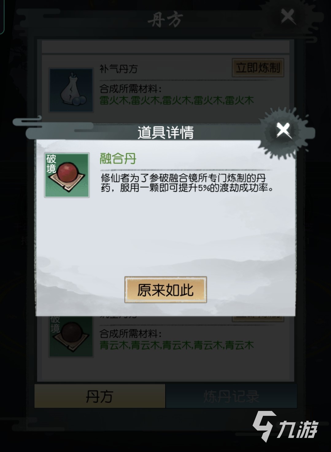 融合丹是游戲中的常見材料,雖然常見,但是確實對玩家十分重要的,因為每一顆融合丹都可以為玩家提供5%的渡劫成功率,幫助玩家渡劫成功,而渡劫成功之后,玩家的戰(zhàn)力會得到很大提高,所以融合丹對于玩家還是很重要的!