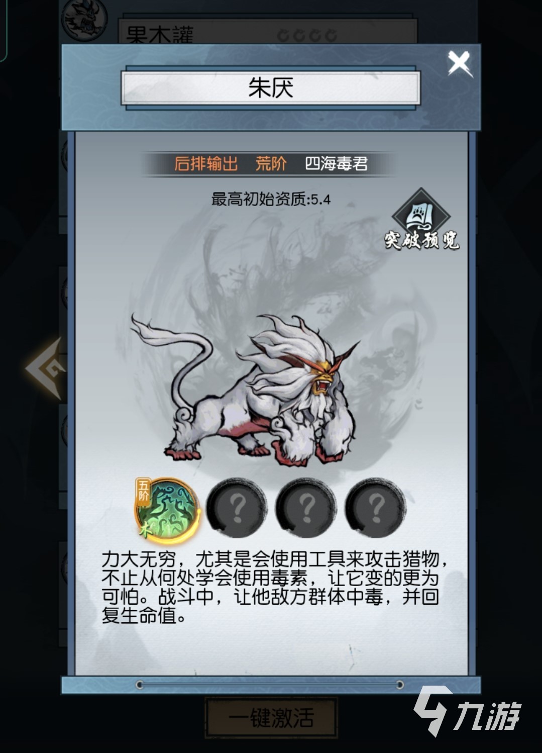 玩家要進(jìn)行靈寵的品質(zhì)判斷的話,其實(shí)只需要了解到靈寵的初始資質(zhì)和階層就可以完全的了解到靈寵的好壞了,比如這個(gè)朱厭的初始資質(zhì)為5.4,這是非常夸張的資質(zhì)了,一般的靈寵資質(zhì)都在1到2之間,足見(jiàn)它的恐怖了!而它的階層還是荒階,荒階是靈寵最高的階層了,這樣判斷,朱厭絕對(duì)是很好的靈寵!