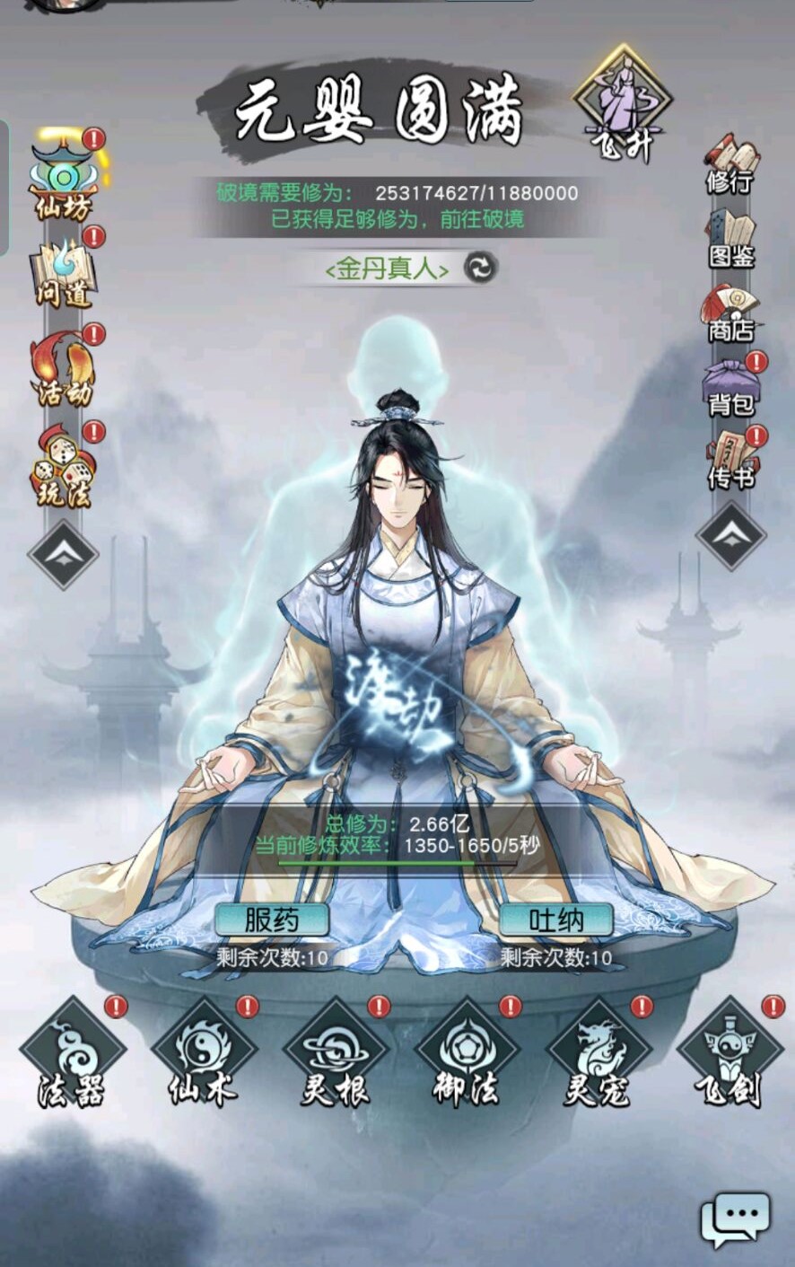 最后,小編害怕玩家們找不到進(jìn)入飛升的地方在哪里,在這里也一并給玩家介紹下,其實(shí)玩家在修煉板塊的正上方就可以看見(jiàn)飛升了,玩家直接點(diǎn)擊就可以進(jìn)入了哦!