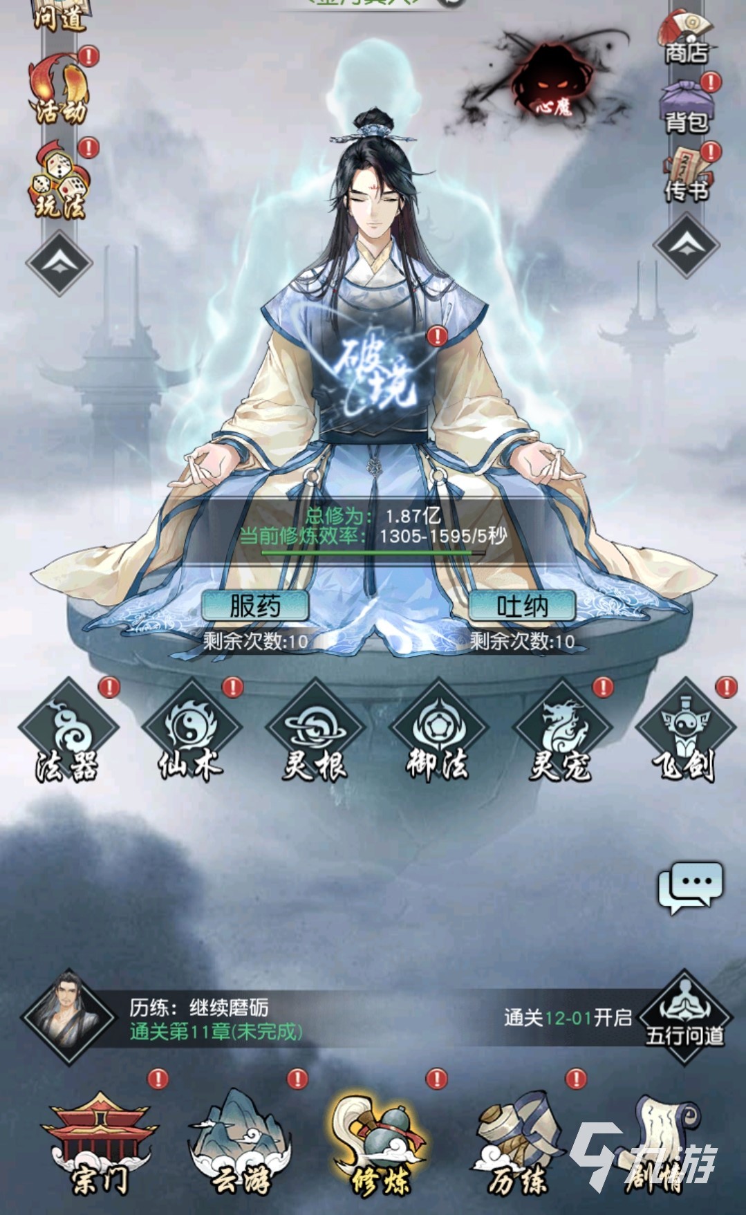 玩家要想強化飛劍的天賦,就需要先進入飛劍的主界面,進入的方法也很簡單,玩家在游戲剛剛進入的修煉主界面直接點擊飛劍就可以進入到飛劍的界面了哦!