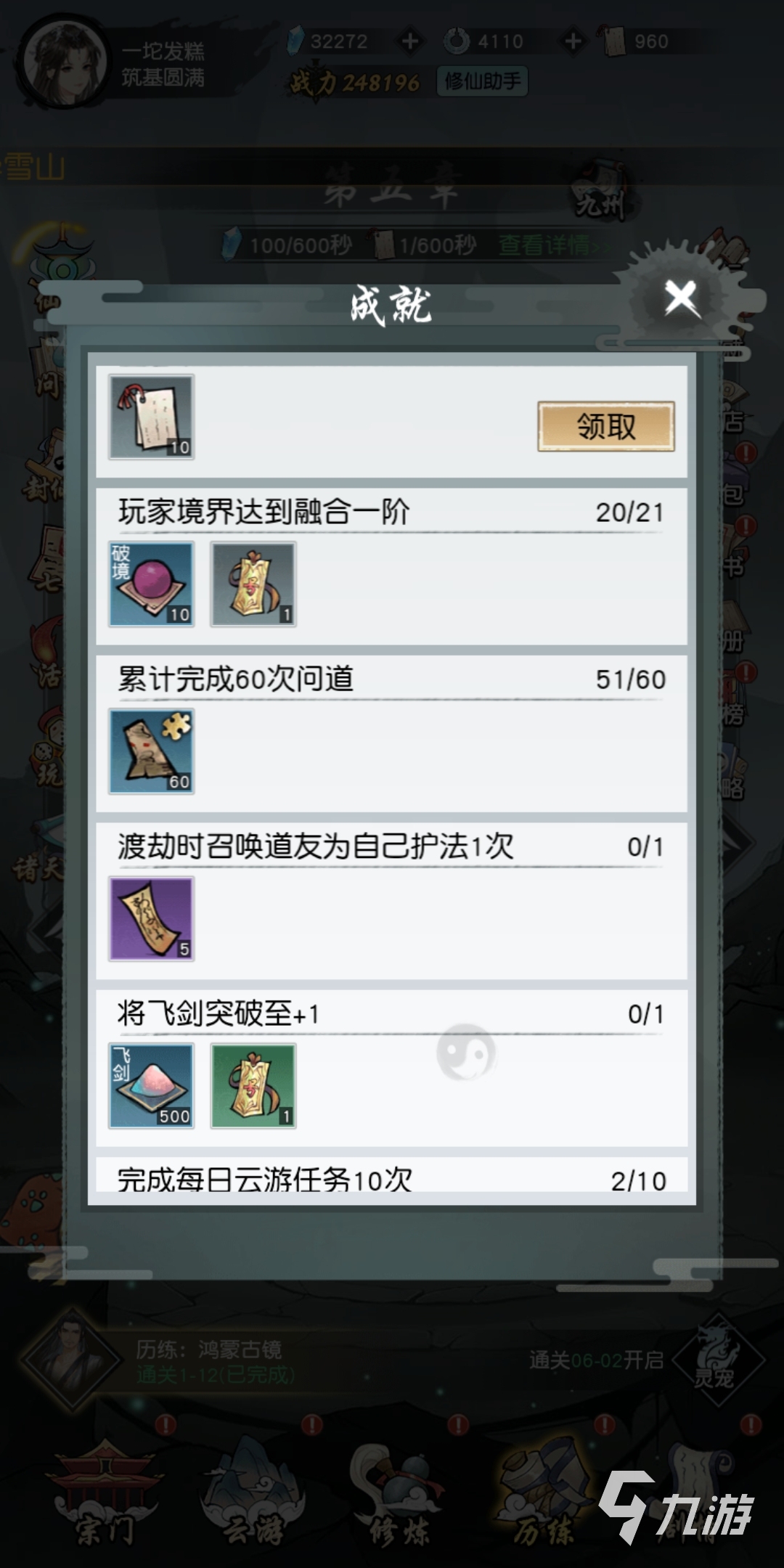完成飛升的條件是角色破鏡成功,一般情況下,只要概率超過75%都是可以成功晉升的。每次晉升后在飛升頁面的右下角處可以領(lǐng)取獎勵,前期每一階的體寒俄國都能得到不定數(shù)值的金元丹,這個獎勵持續(xù)到筑基圓滿。
