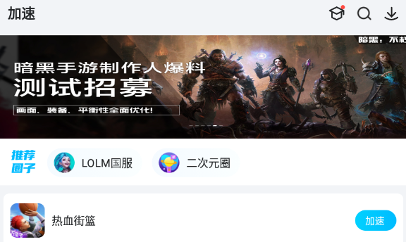 在使用biubiu加速器,加速熱血街籃展開游戲之前,玩家需要先下載并安裝好biubiu加速器,然后直接在biubiu加速器當(dāng)中,找到熱血街籃這個游戲,點(diǎn)擊游戲旁邊的下載選項(xiàng),就可以開始游戲的下載了。