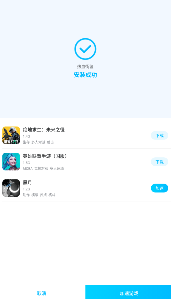 當(dāng)玩家完成了游戲的下載之后,就會進(jìn)入游戲安裝界面,點(diǎn)擊安裝選項(xiàng),就可以開始游戲的安裝了,當(dāng)游戲安裝好之后,玩家就進(jìn)入了游戲安裝成功界面,屆時,玩家直接點(diǎn)擊加速游戲選項(xiàng),就可以開始游戲的加速了。