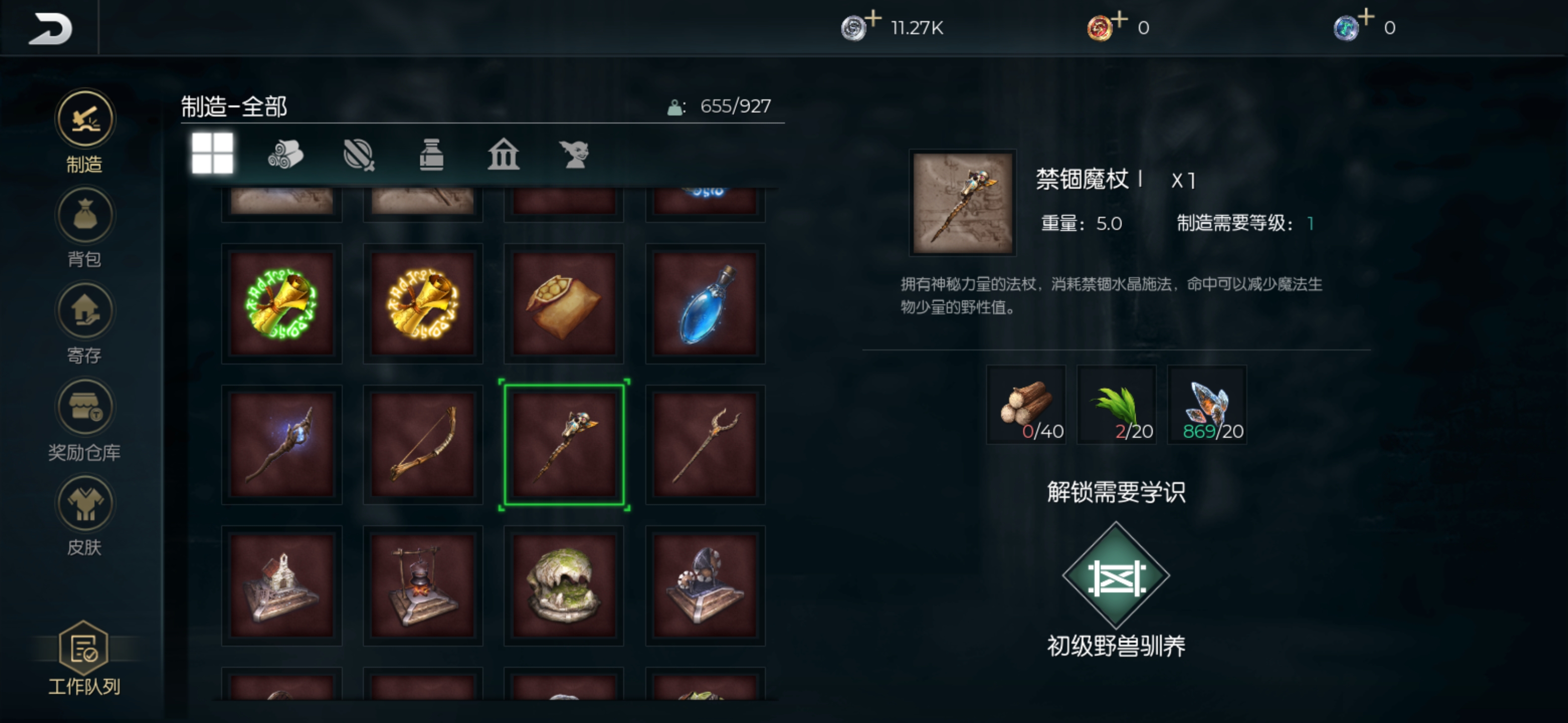 想要獲得禁錮法杖必須要學(xué)習(xí)初級野獸馴養(yǎng)學(xué)識,而且必須得達(dá)到三級,制作配方配比為40個木頭,20個嫩葉以及20個魔能石,禁錮法杖主要針對的是一些元素類的生物,比如說游戲內(nèi)比較強(qiáng)勢的風(fēng)元素、水元素和火元素,雖然造不成很高的傷害,但是在馴服寵物方面非常有效。
