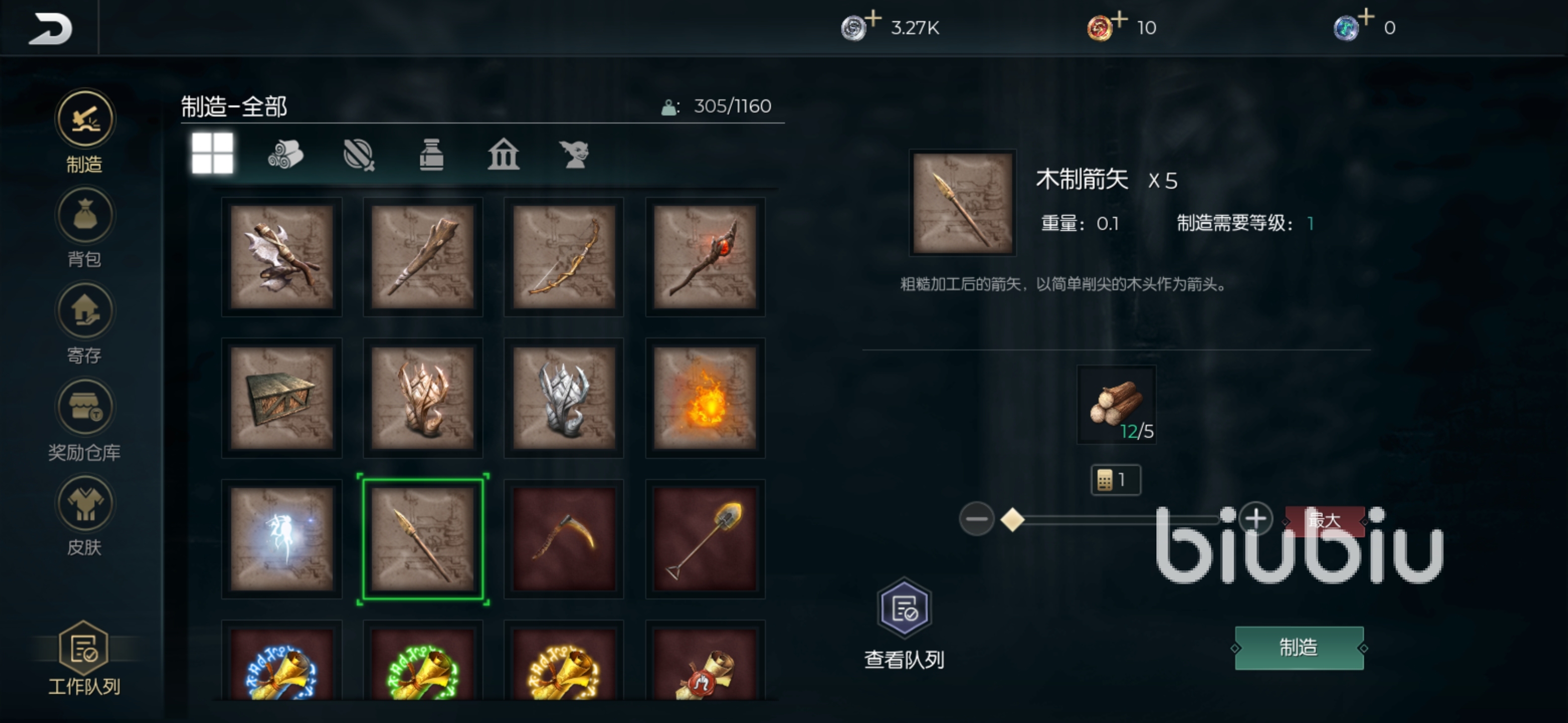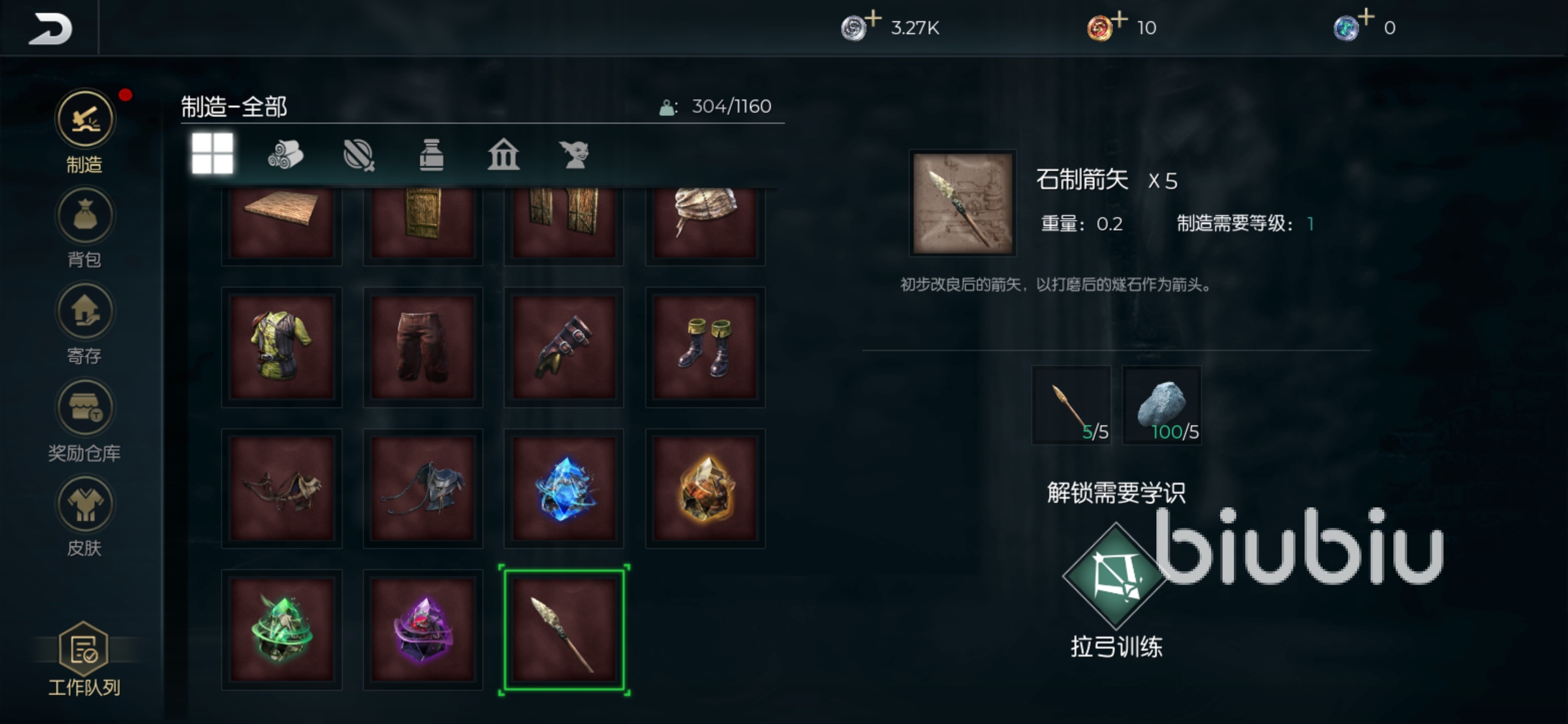 石質(zhì)箭矢制作配方:五個木頭+五個石頭。