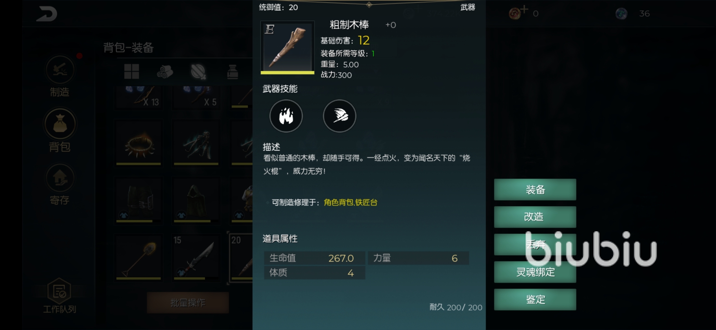 達(dá)到六級(jí)之后玩家們就應(yīng)該適當(dāng)?shù)乃褜ひ幌碌貓D里面的資源來(lái)升級(jí)自己的武器,粗制木棒最好強(qiáng)化到二級(jí),這樣就可以去挑戰(zhàn)哥布林獲取大量經(jīng)驗(yàn)了,等級(jí)提升是我們解鎖游戲內(nèi)眾多玩法的前提。前期只要有能刷的資源就一定要選擇使用魔杖來(lái)汲取,這樣可以獲取更多的經(jīng)驗(yàn)和發(fā)育資源。