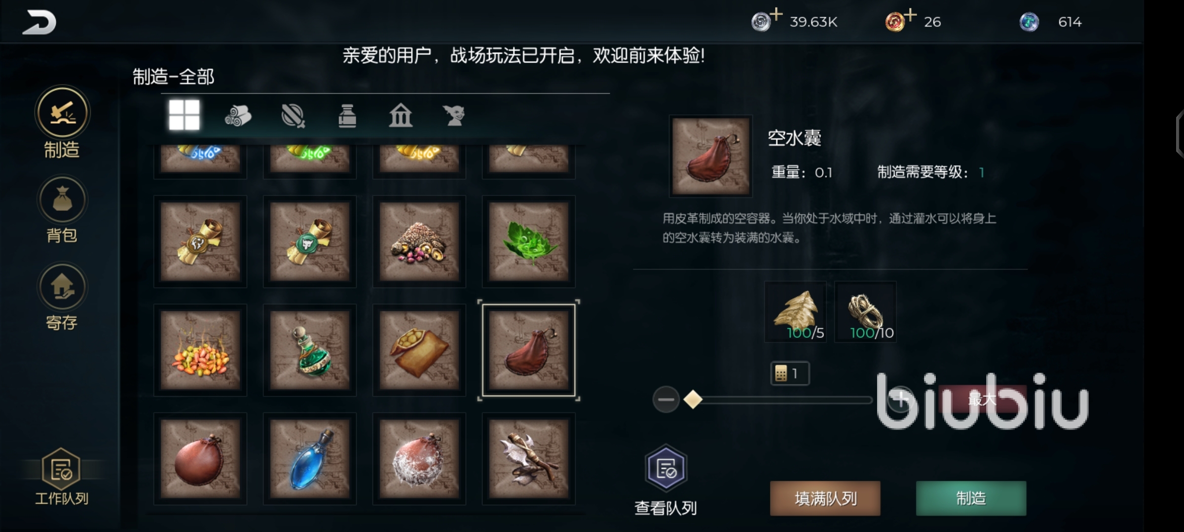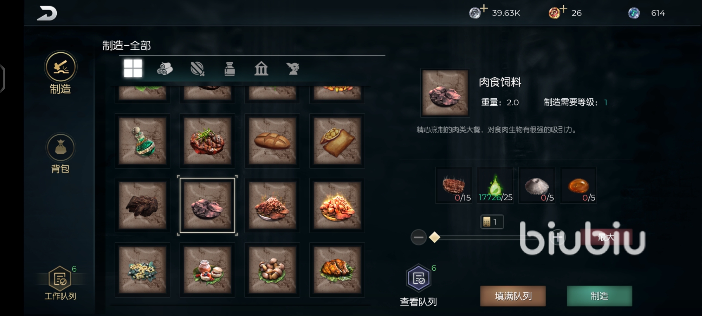 野獸被收入麾下之后野性值仍然沒有消除,玩家們可以通過喂養(yǎng)飼料來慢慢的消除野獸的野性之,這在游戲內(nèi)都是可以制作的,肉質(zhì)飼料的主要制作配方為烤肉、油脂、水珠以及骨粉,如果水總是不夠的話可以制作一個(gè)水袋,在經(jīng)過水域的時(shí)候可以存一點(diǎn),以備后患。