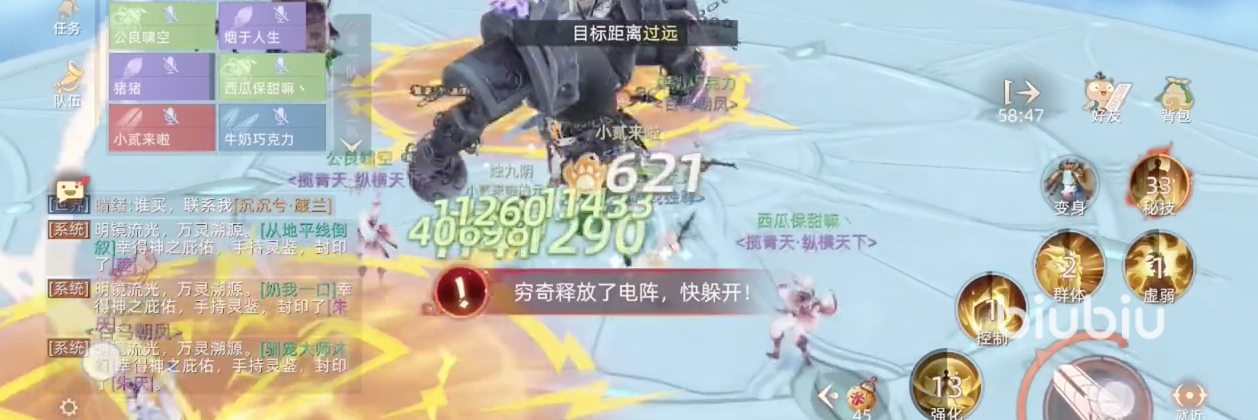 窮奇boss有時候會釋放閃電,這時候一定要看好屏幕及時走出電的范圍圈,奶媽繼續(xù)加血。