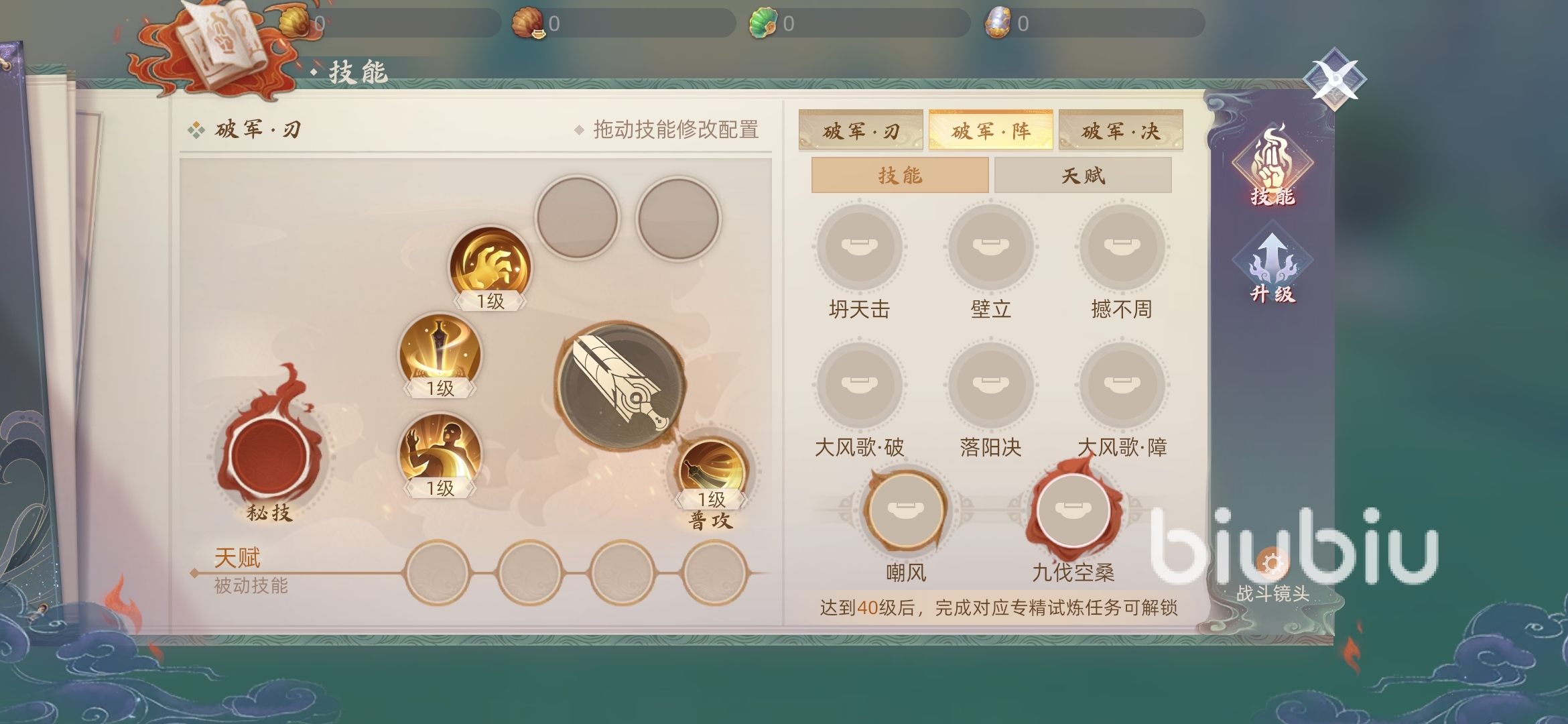 破軍技能有三個方向:破軍·刃;破軍·陣;破軍·決。