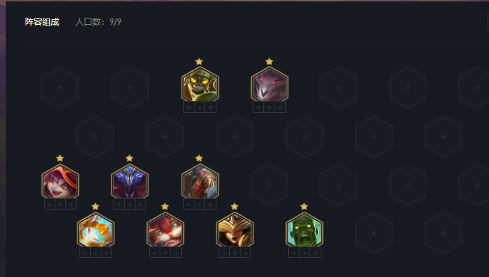 陣容8/9人口都是可行的,但針對9人口D 5費(fèi)概率提升,以及狗熊的進(jìn)場控制還有3復(fù)生亡魂羈絆,還是建議大家拉9人口,補(bǔ)齊完全體陣容。