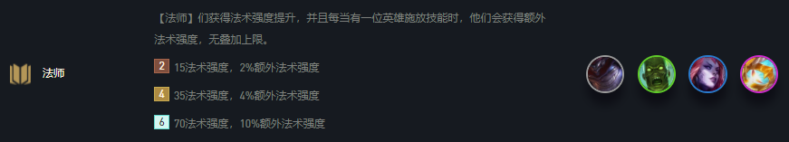 這套陣容成型后的強(qiáng)度非常高,但需要9人口,并且大頭拿到法師轉(zhuǎn)職書。法師羈絆改成了新版本法強(qiáng)加成沒上線,所以法師羈絆在這幾個(gè)版本中強(qiáng)度非常高,往往后期越打越厲害。