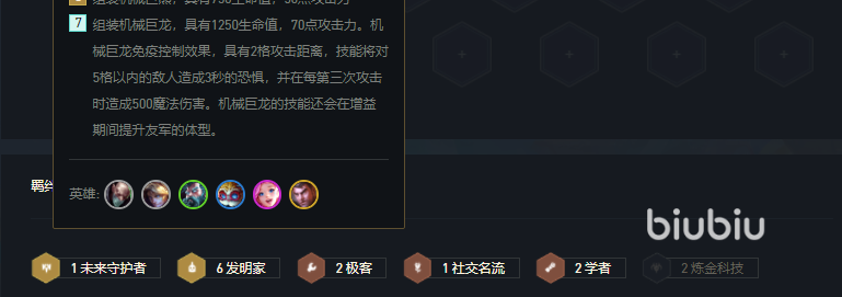 7發(fā)明家羈絆可以召喚一個非常厲害的海克斯巨龍,有傷害又輸出有坦度還有控制,但是除此外對發(fā)明家英雄沒有任何屬性加成,7人口換一個巨龍其實是不劃算的。但是玩家可以利用3/5/7發(fā)明家召喚生物的羈絆效果靠著運(yùn)營期間的人數(shù)優(yōu)勢瘋狂拿連勝,然后后期掛一些高費(fèi)卡,畢竟發(fā)明家中除了EZ都難堪輸出達(dá)人。