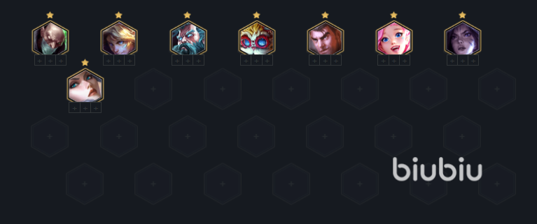 陣容羈絆:7/7發(fā)明家、1/1未來守護(hù)者、2/2姐妹、2/2執(zhí)法官、2/2格斗家、2/2極客