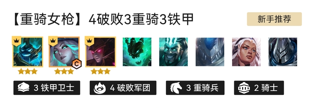 首先由小編介紹一下這個(gè)陣容的組成,由人馬,女槍?zhuān)i妹,錘石,德萊文,泰坦,芮爾,武器大師組成,人馬,豬妹和芮爾組成三重騎兵,武器,泰坦和芮爾組成三鐵甲,德萊文,錘石,女槍?zhuān)笋R組成四破敗,可以說(shuō)是羈絆方面十分簡(jiǎn)陋了,但是強(qiáng)度方面還是很高的。