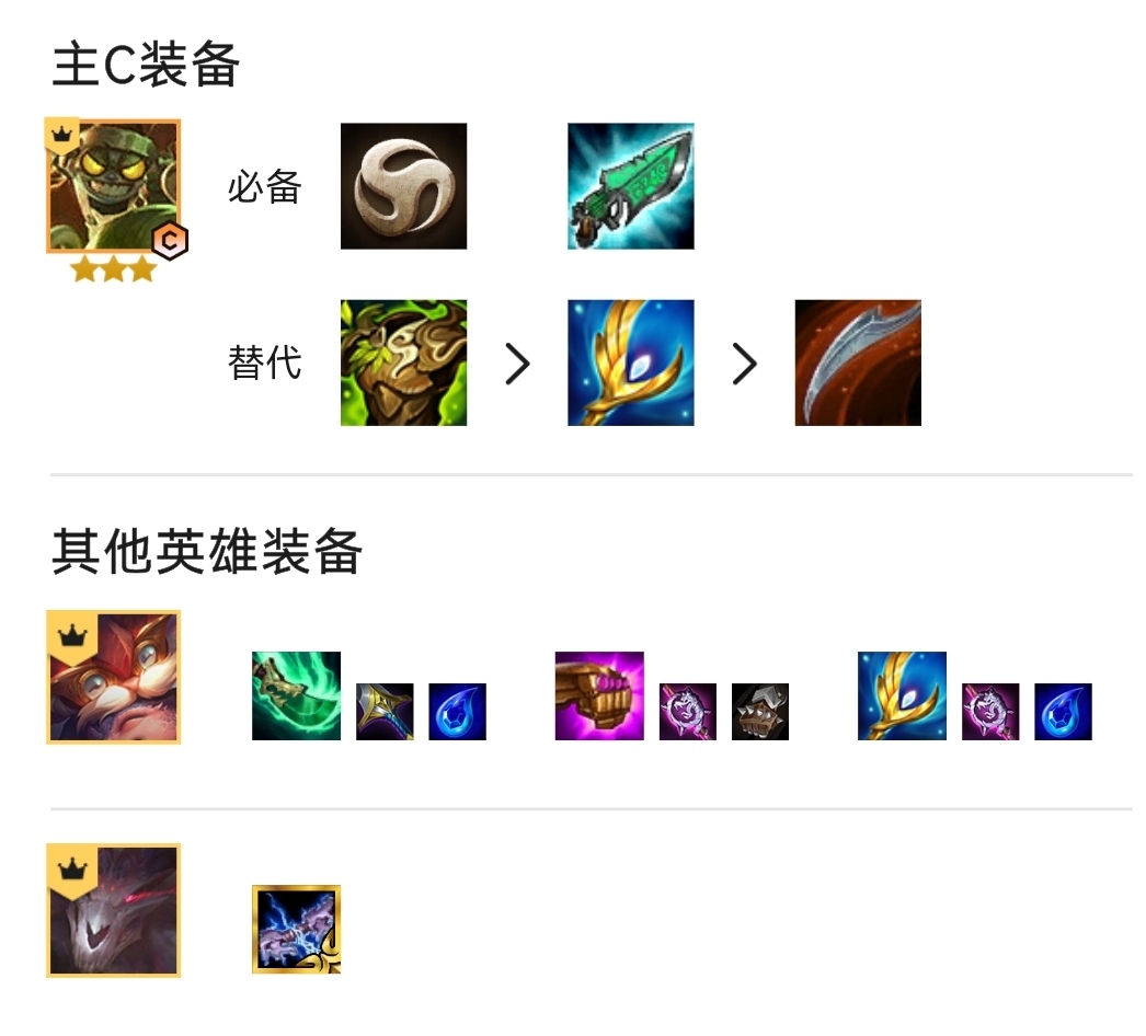 在前中期,努努是可以穩(wěn)住局面的,但是如果努努沒有三星的話,在后期就會(huì)非常乏力,我們這時(shí)候就應(yīng)該給到大頭裝備了,青龍刀,法爆,大天使等等。以上就是小編帶來的云頂之弈復(fù)蘇努努的具體玩法,小伙伴快去試一試吧。