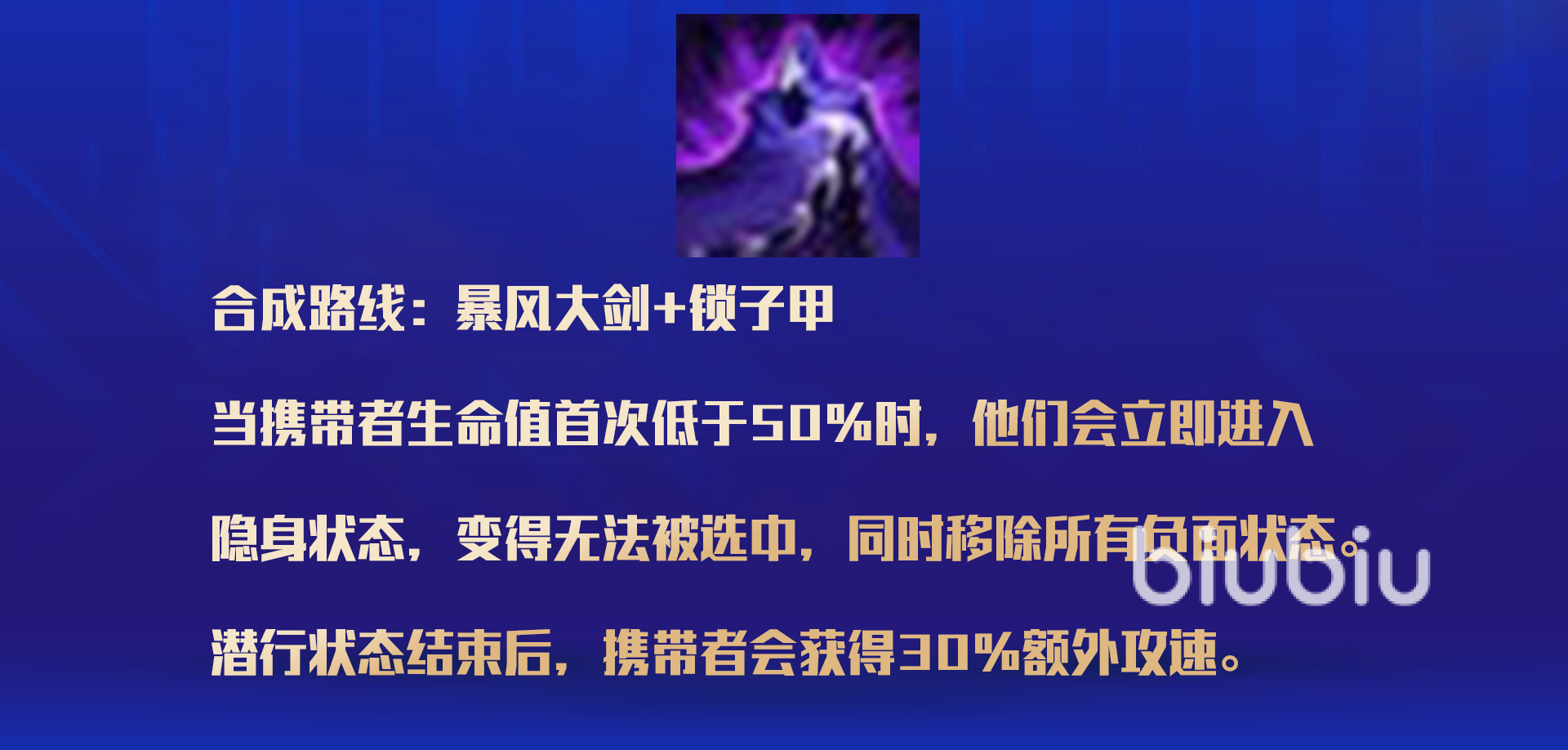 在新版本中裝備也有所改動(dòng),很多裝備的屬性都有所調(diào)整,其中改動(dòng)最大的就是復(fù)活甲了,復(fù)活甲在全新的版本當(dāng)中叫做夜之刀鋒,與復(fù)活甲相比增加了很多的正面收益,合成途徑依舊是大劍和鎖子甲。