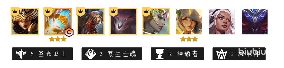 這個版本的銳雯也是可以擔(dān)任主C的,并且這套陣容是豹女作為副C的,雙C的陣容加上騎士鐵衛(wèi)的前排,為C為吸收了大量的傷害,讓銳雯可以有一個更大的輸出空間。但是這套陣容是比較吃雙C的質(zhì)量的,三星銳雯即可進(jìn)入前四,如果還能知道三星豹女的話,基本就可以坐等吃雞了。